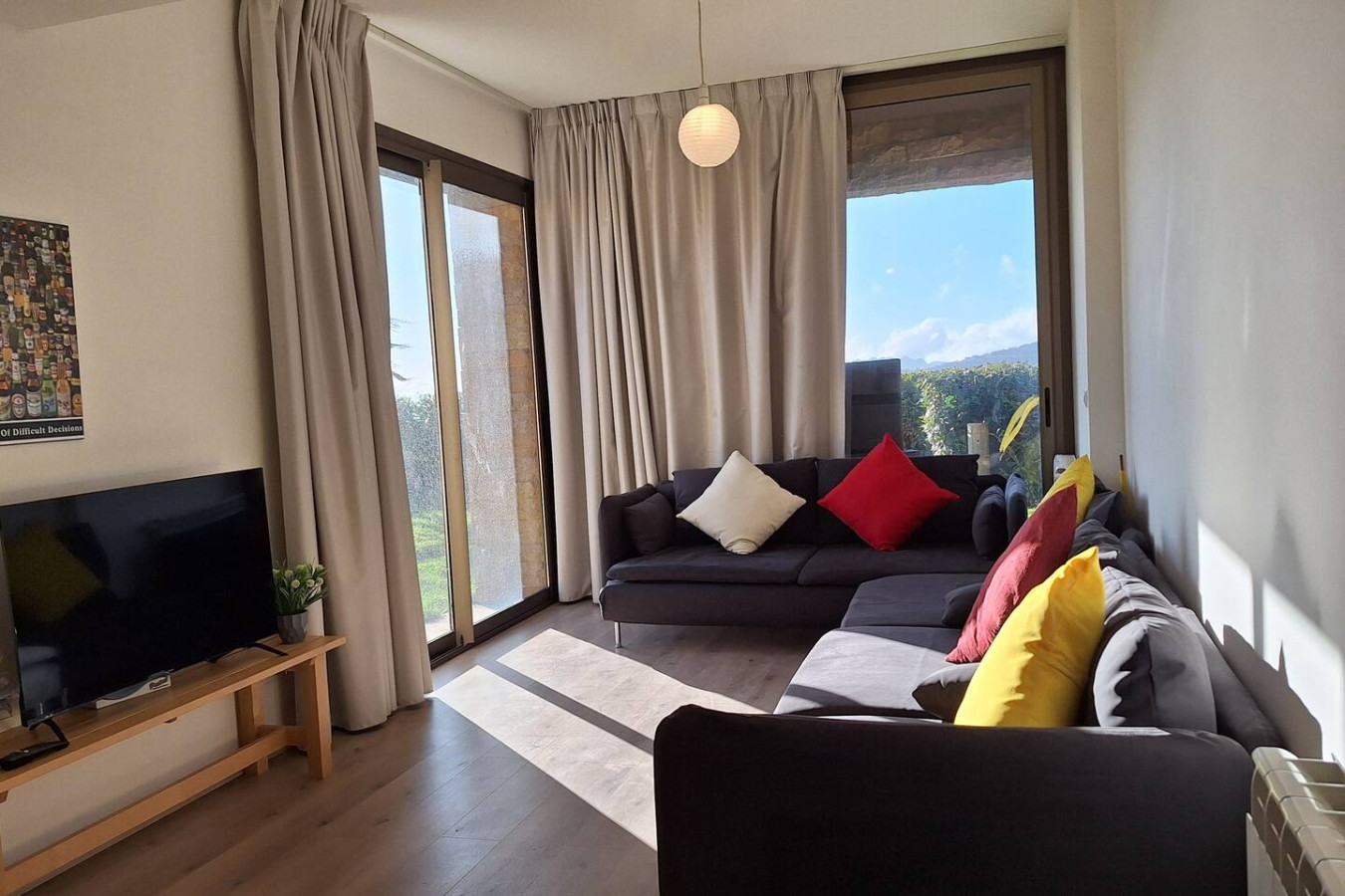 Escape to our cozy chalet in Redrock,Bqaatouta Enjoy stunning mountain views, a rustic ambiance, and a peaceful retreat in nature. Perfect for a tranquil getaway. It's the highest chalet unit In the Redrock Project with amazing view, beautiful Garden. Two parking spots. The chalet is a 15 minute drive away from Faqra Club. Welcome to your Rouf Stay in Redrock - bqaatouta. Below you will find the main details about our property: Property Type: Apartment Accommodates: Up to 4 guests Bedrooms: 2 bedrooms Bathrooms: 2.5 bathrooms Beds: 1 King bed - 2 single beds Additional Features: Parking space, Balcony and Terrace +Large & beautiful private garden with exceptional views, and private access from living and garden level bedroom 2 parking spots (garage and external main entrance) Bedroom on top floor with en-suite bathroom and balcony The guest has full access to all rooms in the unit, the private garden, their designated outdoor or indoor parking spot, and all the pools within the Redrock project. Kindly make sure not to enter or use the garden space of the neighboring property. Once you’ve checked in, if you need any help, feel free to contact us on this number: 71418300 (Dayana – Team Leader, Faraya). A clear photo/scan of your ID or passport is required before check-in. This also includes all the guests who will be staying in the apartment. Power is 24/7. The detergent and soap bottles can be refilled. Please do not dispose of them. The products are organic, and eco-friendly too! REDROCK RULES : * Loud music with subwoofers, singing, shouting, playing music instruments is NOT ALLOWED. * Music is NOT ALLOWED between 1pm to 3pm, and after 12 midnight. * Parking on Basalt sidewalk is NOT ALLOWED, guests should only park on specified spots as indicated by the owner. ◦ Car parking is limited to 1 (one) car only for 60-50 sqm chalet and 2 (two) cars only for 100 sqm and above. *Laundry on the balcony is NOT ALLOWED. * Dog without a leash or any undomestic animals is NOT ALLOWED. * Al dog litter should be removed by the owner of the dog. * Dog barking should be controlled especially during rest hours. * Trash should be disposed only in designated area in the underground parking. * Pool access time is from 10:00 am until 7:00 pm; the security/life guard in charge has the full authority to enforce those rules and regulations. * Pool access is restricted to owners use only and/or the no. of lessee of the rented unit . * All children under the age of 4 years old must wear a swimsuit diaper. * Children not to be left unattended and supervised by their parents. * Arguileh, BBO, ceramic or glass containers and ball playing are NOT ALLOWED in the pool area. * Eating and drinking in the pool and pool area is strictly prohibited. * Bicycles, tricycles, scooters or any battery driven vahines are NOT ALLOWED in the pool area, parking or common areas. * Pets inside the pool and in the pools area are NOT ALLOWED. * Burkinis swimsuit is NOT ALLOWED. * Music in the pool area is NOT ALLOWED. * The management is not responsible for personal lost items in all common and pool areas. * The use of any common area as an extension of any one unit by any resident to is prohibited. * Vehicle speed must not exceed 30 to 40 Km/h. * The use of any kind of arms is strictly forbidden. . Any illegal activity (drug consumption, gambling.,... is NOT ALLOWED and shall lead to juridical procedure. * Air drone is NOT ALLOWED in order to respect people's privacy. * Towels or tissues or other sewage blocking items should not to be thrown in toilet., * Descent behavior to be observed in all common and swimming pool area. * Guests should permit access and inspection of their units by security officer and authorized personnel . * Owners are required to submit to the management, 2 days prior to check-in date, a list of names, IDs and contacts of all guests. In the event of non-compliance, lessee will not enter the project under no circumstances. * Guests should respect the maximum electrical load and should not manipulate electrical outlets and breakers. * Owners will remain solely responsible for the activities of their lessees, legally & financially . * The non-respect or violation to these rules or falsification of information by the guests may lead to their immediate expulsion from the facility without any compensation or refund. Please note that the gardener may pass by the garden once a week to check on the plants.