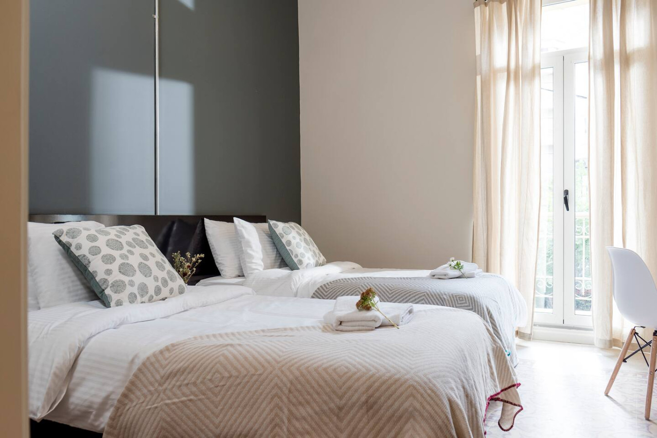 Unwind at this stunning renovated 4 Bedroom Apartment in Monot. Our building was lovingly built with stone walls, high-beamed ceilings, and antique details for a luxurious yet charming feel. If you don't want to stay in, enjoy the city and its busy streets walking distance from our apartment. An extra set of towels and bedsheets is available for a certain fee upon request. Welcome to your Rouf Stay in Monot. Below you will find the main details about our property: Property Type: Apartment, Accommodates: Up to 8 guests Bedrooms: 4 bedrooms Bathrooms: 5 bathrooms Beds: 2 Double beds, 4 Single beds Additional Features: Balcony You will be staying in the old street of Monot that neighbors busy streets like Gemmayze and Sursock. You are surrounded by Restaurants, art places and museums all around you and for more functional needs, lots of grocery stores and places where you buy you usual need. You will not finding any difficulty finding a taxi to go around. We are in a central location of Beirut. Power is 24/24 The detergent and soap bottles can be refilled. Please do not dispose of them. The products are organic, and eco-friendly too! -Please note that the building has no elevator, you'll have to take the stairs to reach the first floor. -A clear photo/scan of your ID or passport is required before check-in. This also includes all the guests who will be staying in the apartment. -This apartment has Fiber optic internet. -The washing machine also has a dryer function.