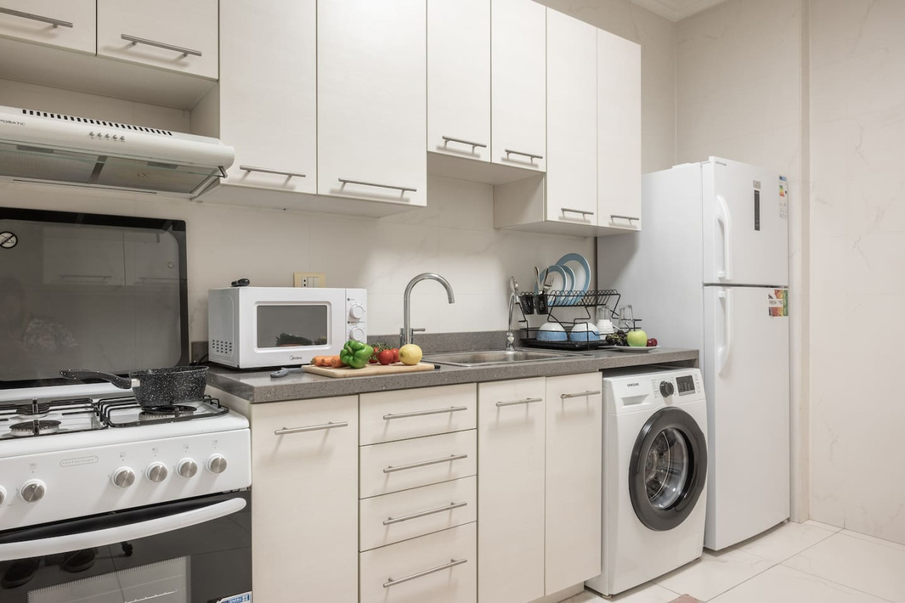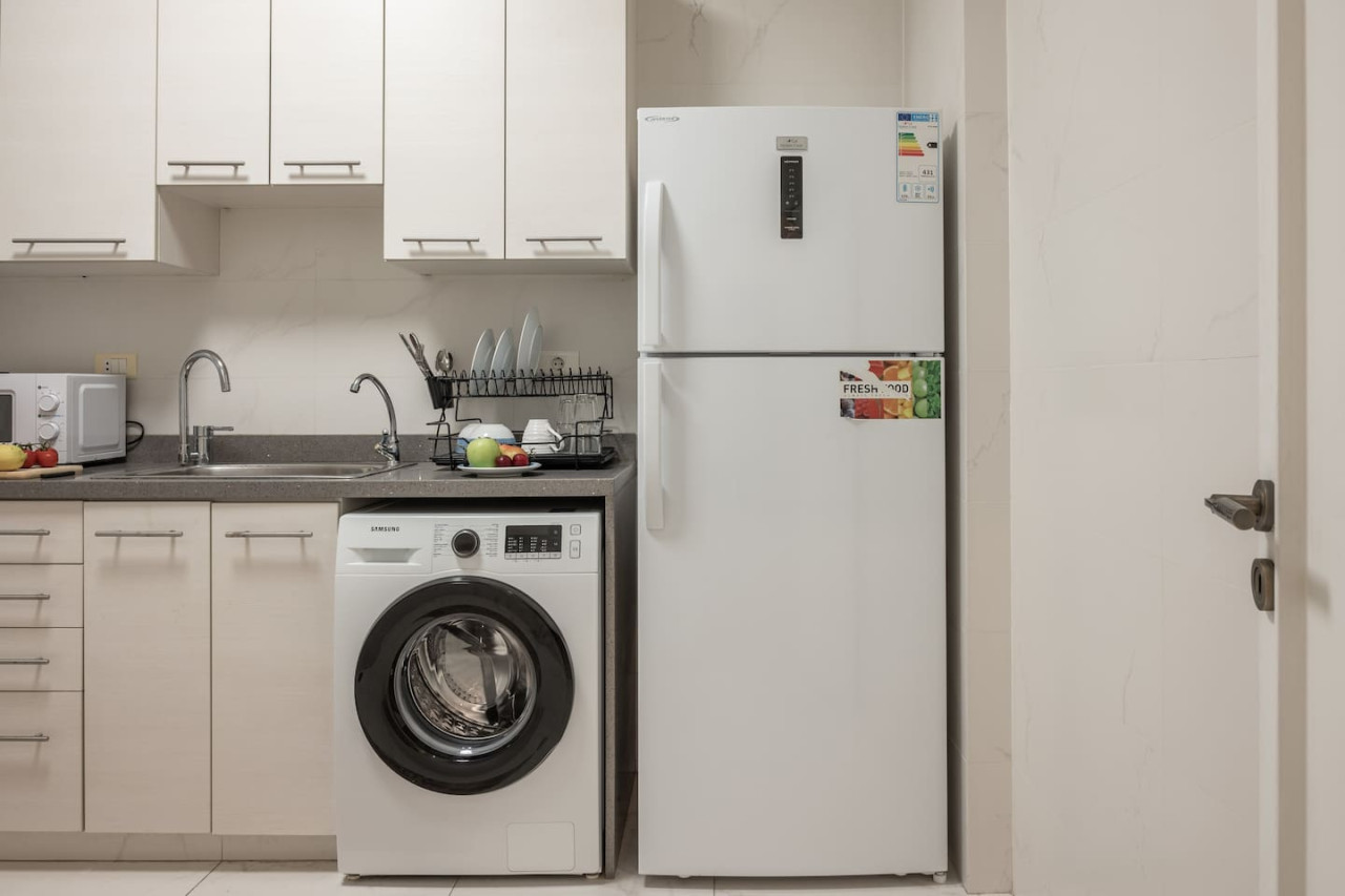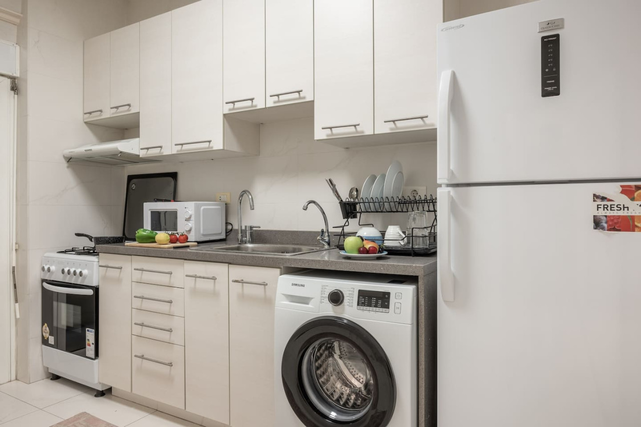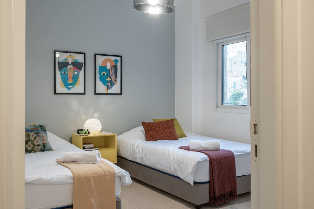 Immerse yourself in the vibrant energy of Beirut's Gemayze district at this comfortable 2-bedroom haven. This charming apartment is within walking distance of caffes , bars and within walking distance to downtown Beirut ! Electricity in the apartment is powered by Generator and UPS 24/7. During non-generator time heavy Appliances such as ACs, Microwave , Kettle and similar will not operate. the generator is off from 2 AM to 6 AM