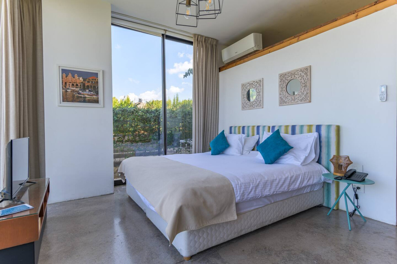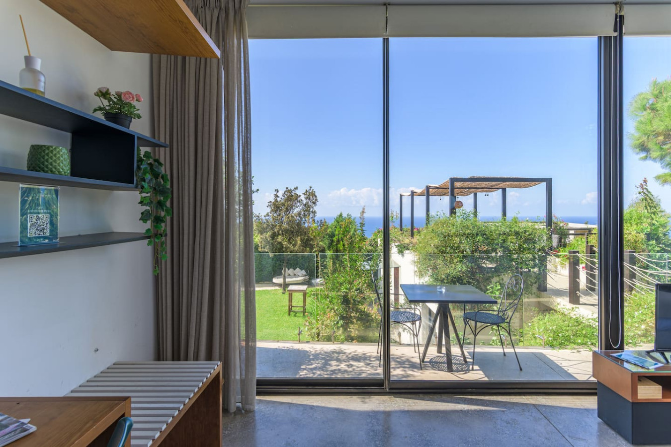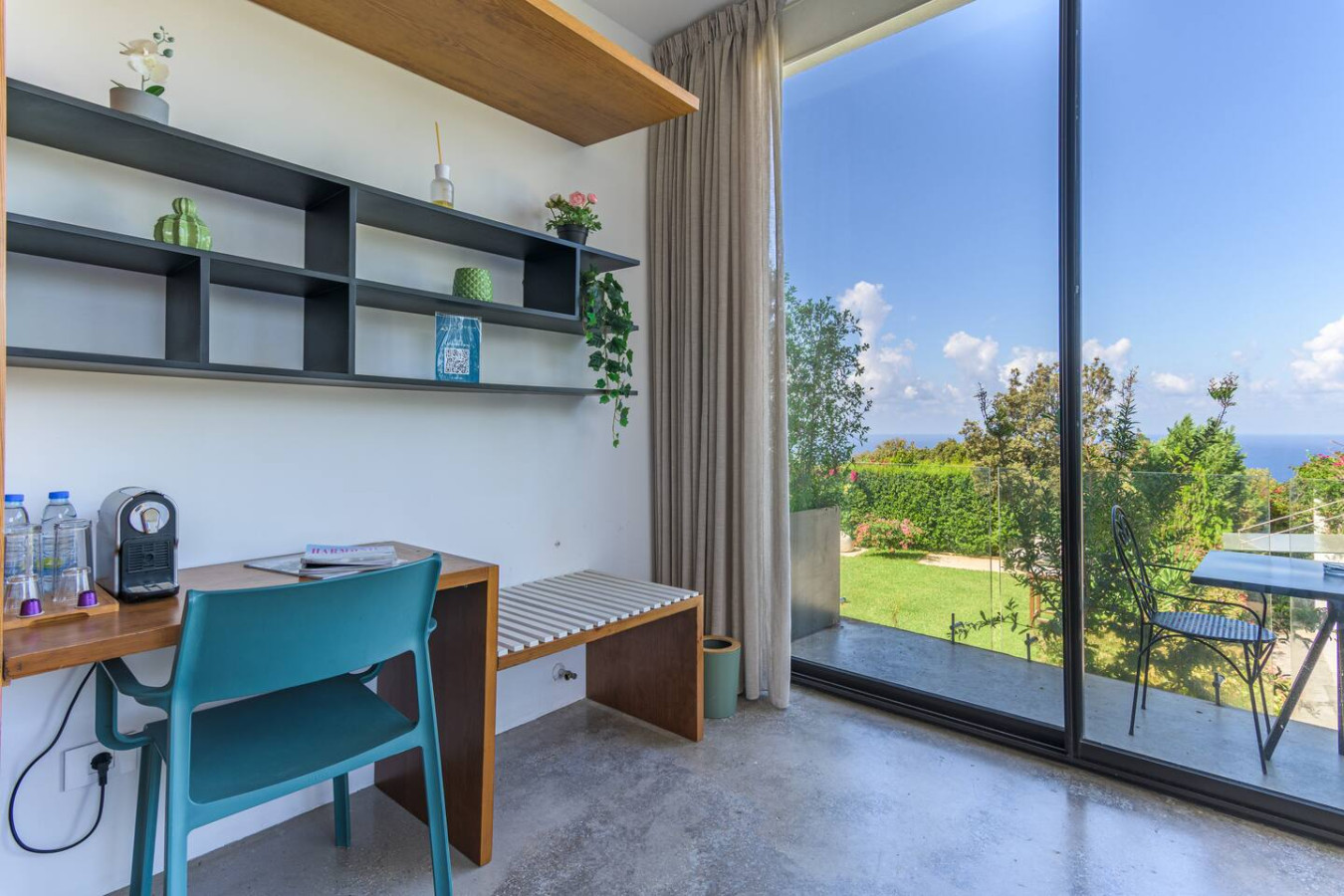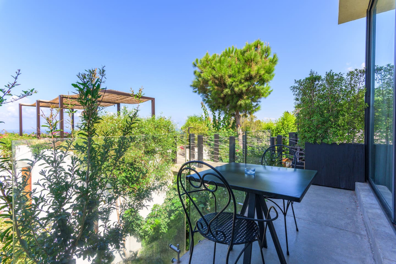 Nestled within the charming Casa De Thoum guesthouse, the Verde Room lives up to its name, a serene retreat surrounded by lush greenery and overlooking the glittering Mediterranean Sea. Wake up to the gentle sound of nature, breathe in the garden’s fresh air, and watch the sunlight dance on the water. Designed for peace and relaxation, this cozy sanctuary invites you to slow down and embrace the calm rhythm of coastal life in Thoum.