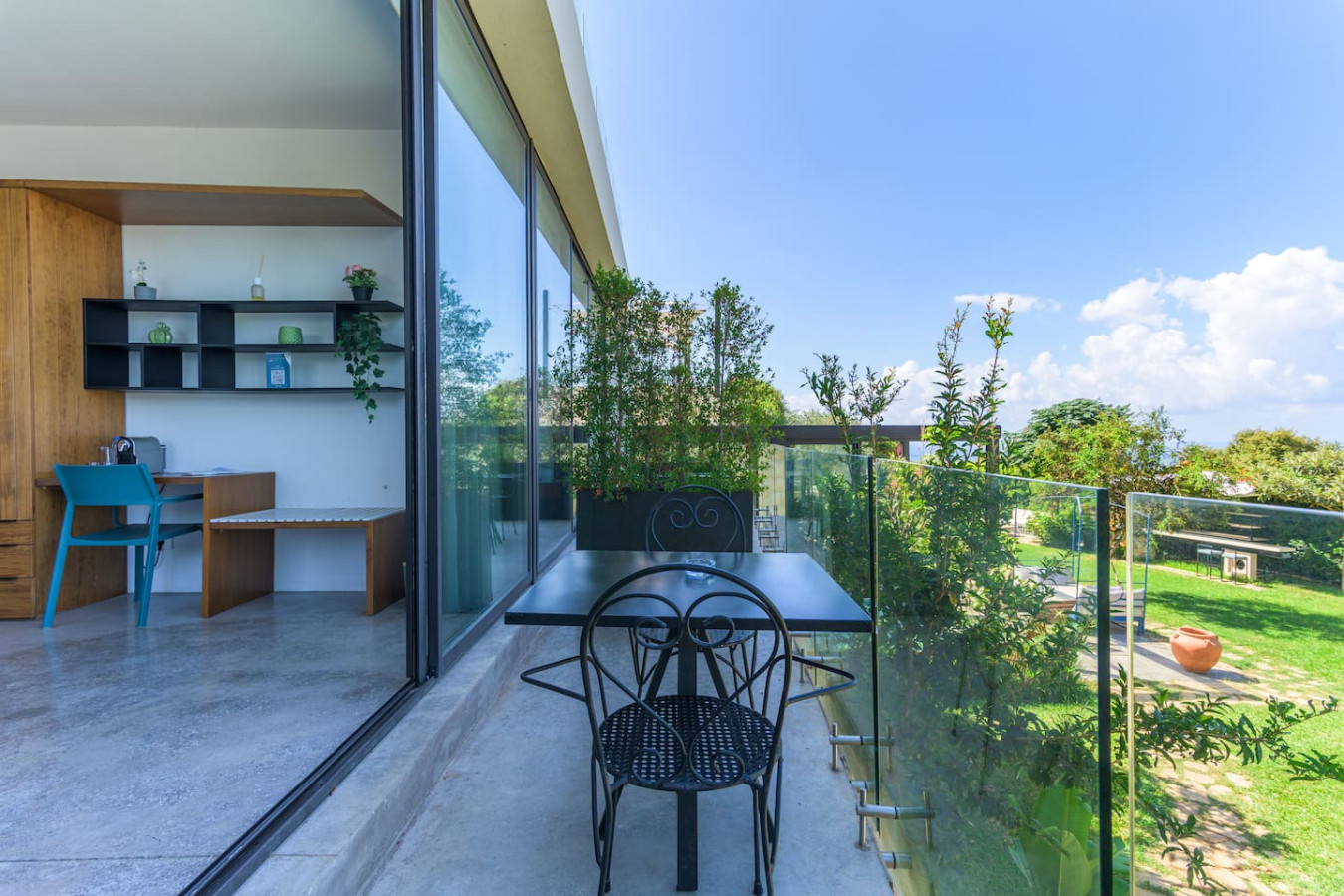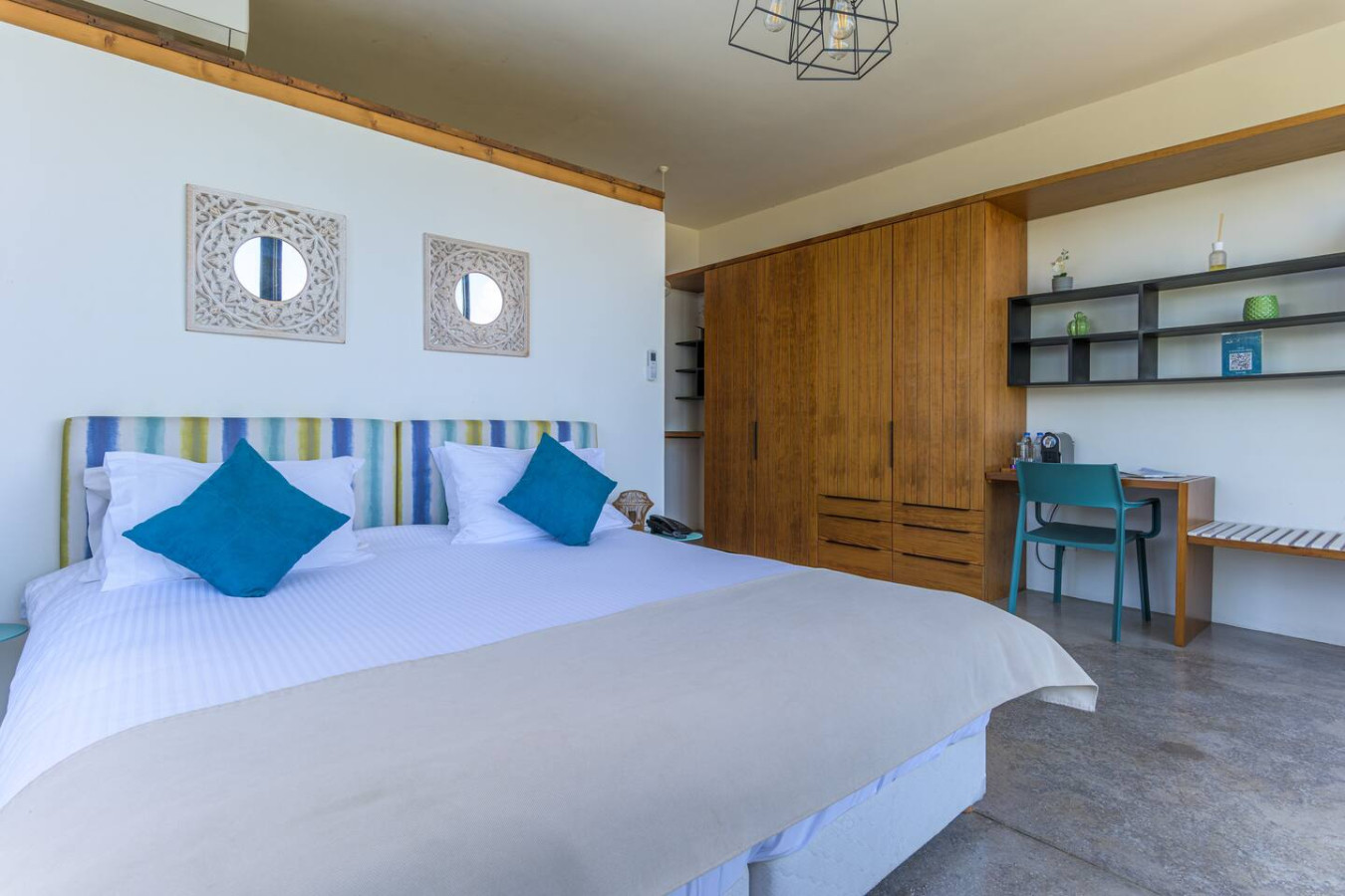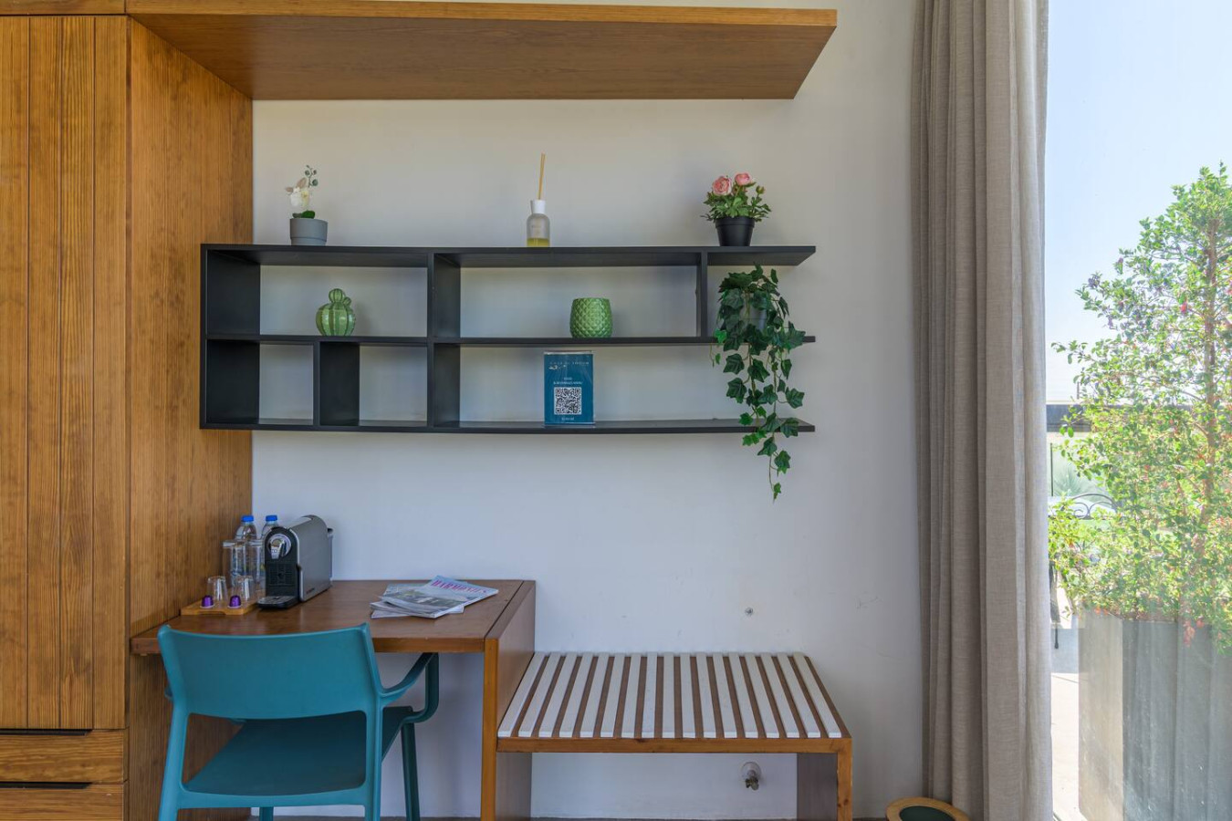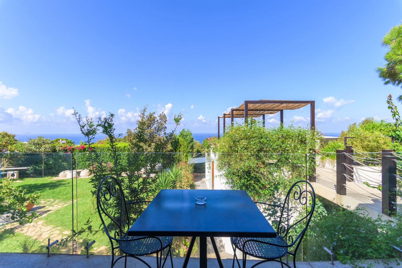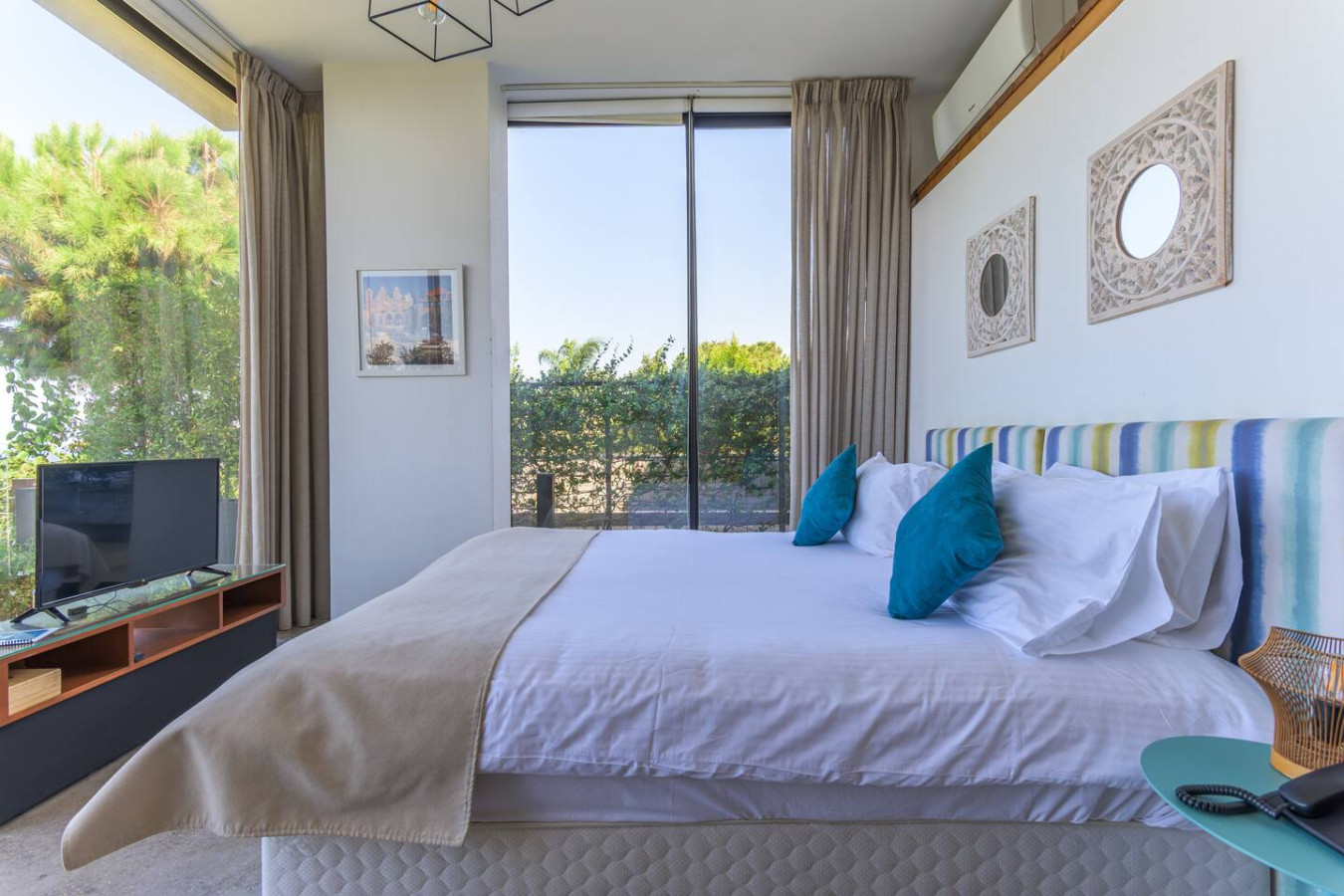 Nestled within the charming Casa De Thoum guesthouse, the Verde Room lives up to its name, a serene retreat surrounded by lush greenery and overlooking the glittering Mediterranean Sea. Wake up to the gentle sound of nature, breathe in the garden’s fresh air, and watch the sunlight dance on the water. Designed for peace and relaxation, this cozy sanctuary invites you to slow down and embrace the calm rhythm of coastal life in Thoum.
