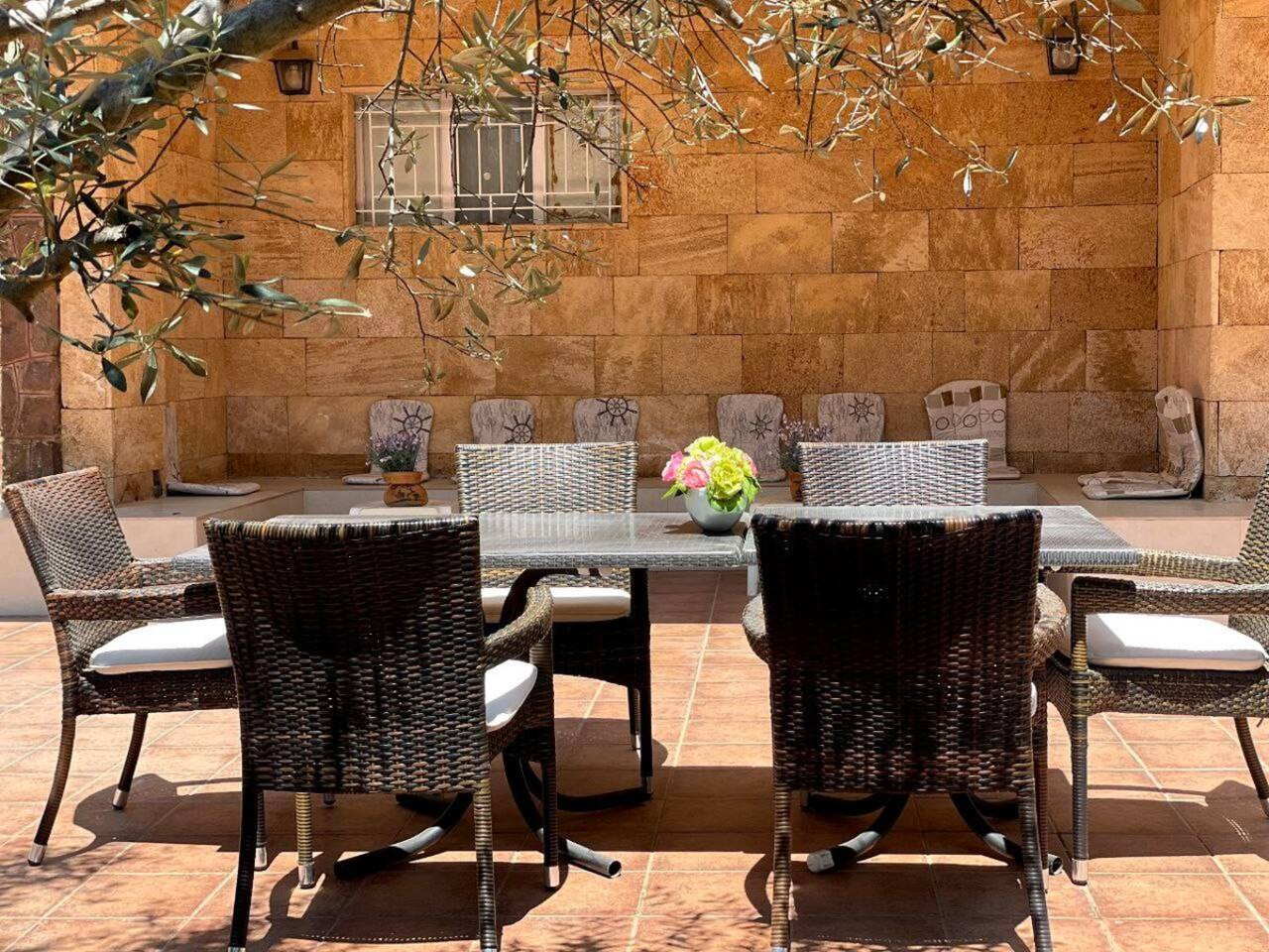 Escape to our spacious 4-bedroom villa in Rayfoun! Enjoy an amazing garden, perfect for hot summer days, and a delightful BBQ area. Inside, you'll find classic charm and convenience, including a kitchen with a direct window to the BBQ area. With a garage for 4 cars and a private gated entrance, it's the ideal retreat for your vacation. Book now to experience the magic of Rayfoun's fantastic weather and create lasting memories in Lebanon's countryside! Welcome to your Rouf Stay in Rayfoun. Below you will find the main details about our property: Property Type: Villa Accommodates: Up to 9 guests Bedrooms: 5 bedrooms Bathrooms: 2.5 bathrooms Beds: 2 King beds, 1 Queen bed, 4 Single beds Additional Features: Parking space, Terrace, garden and Balcony There is a locked closet where the owner stores personal items, as well as one room that is closed and only accessible by the owner ( pantry room ) The team leader will get in touch with you before check-in to send you all the details. Once you’ve checked in, if you need any help, feel free to contact us on this number: 71418300 (Dayana – Team Leader, Faraya). A clear photo/scan of your ID or passport is required before check-in. This also includes all the guests who will be staying in the apartment. Power is 24/7. The detergent and soap bottles can be refilled. Please do not dispose of them. The products are organic, and eco-friendly too!